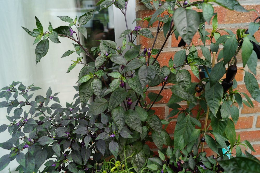 The bolivian rainbow, capsicum annuum from bolivia, beautiful looking plant that gets its name from the colours, purple tasting the bolivian rainbow chili after it has changed from purple to white.