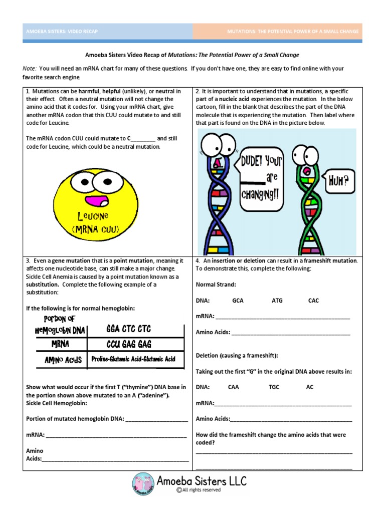 Dna mutation practice worksheet answers amoeba sisters dna vs rna. These nucleotides spell out a sequence that forms each individual's unique genetic code. Review those terms and write a short definition transcription: Answer key dna fingerprint analysis vocabulary: Work power and energy worksheets answers.