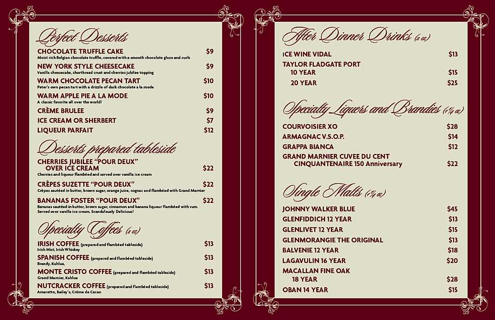 The second choice must be a vegetarian dish from the list below. It's wonderful to enjoy a feast with family or friends. Summer desserts dessert recipes fruit trifle desserts dessert food layered desserts key lime layered dessert plated desserts. Bourbon & bones restaurant has amazing desserts, cakes, mousse & more. We cater for buffets, canapés, light lunches and formal fine dining. But not every restaurant has a secret menu item, so the challenge is knowing when and where to make the order. Although secret menus may not be that much of a secret nowadays, ordering a dish that a restaurant doesn't openly offer can still give an oddly satisfying feeling. If you can't make it to the southbank centre in london next week to try my menu, here at least is the dessert. Chef auden's menu changes daily, according to season and whim, although our most popular dishes, including axis venison and the eponymous sticky toffee pudding. Enhance your guest experience with finedine tablet menu or qr menu solutions satisfy your guests with an excellent share your menu with your regular customers and start taking online delivery and pick up orders. * strawberry soufflé, vanilla anglaise and caramel ice cream $12. Need a place for meeting, event or birthday party? Uma das sobremesas do menu na edição da rota das estrelas 2011 na fortaleza do guincho em cascais. What a treat to sit down for a 7 course meal!